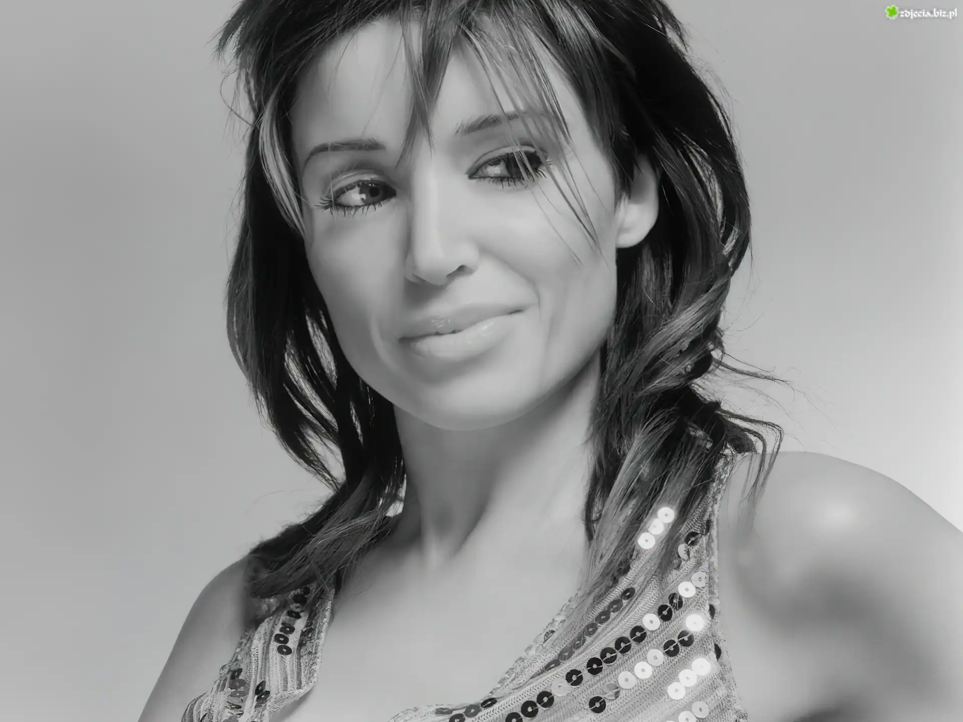 włosy, Dannii Minogue Uśmiechnięta, Dannii Minogue, Kanapa Dannii Minogue, gorset Dannii Minogue, krawat, beret spojrzenie, Dannii Minogue Dannii Minogue, czarny, podkoszulek Dannii Minogue, łańcuszek