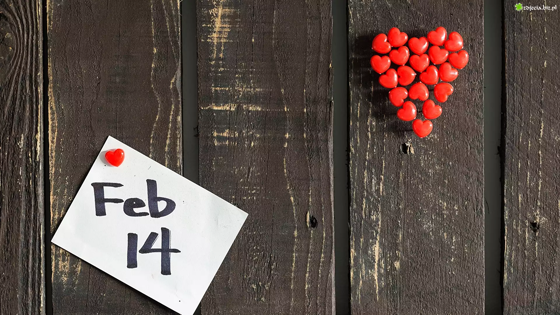 Zdjęcie Kartka, Data, 14 Luty, Serduszka, Deski, Walentynki