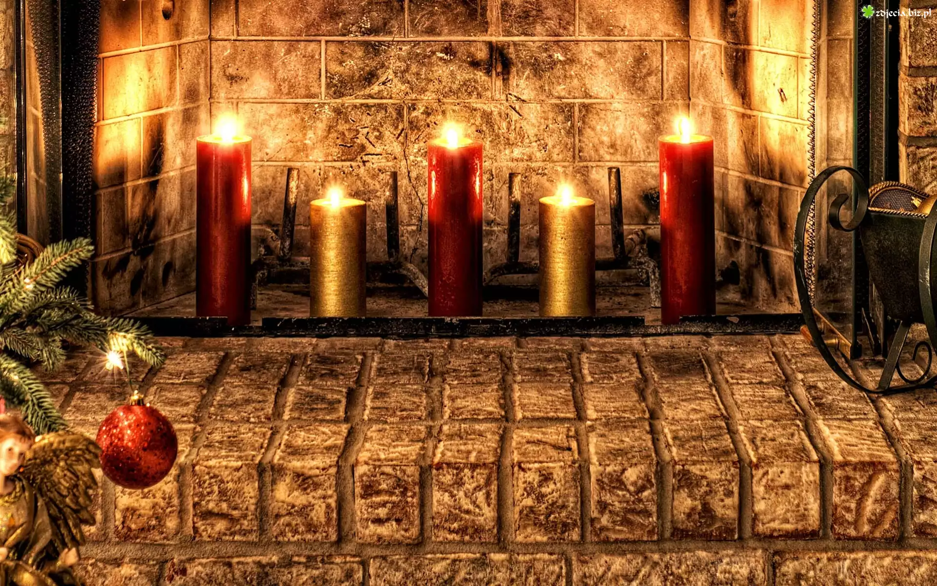 Zdjęcie Świąteczna, Dekoracja, Świece, Kominek