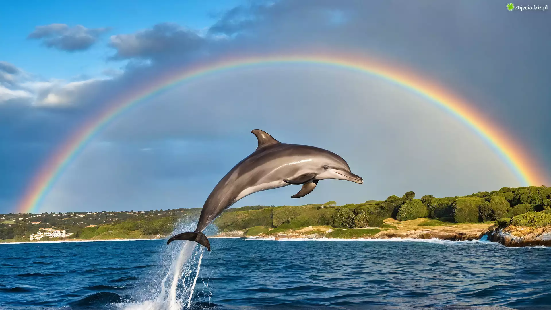 Zdjęcie Delfin, Morze, Tęcza