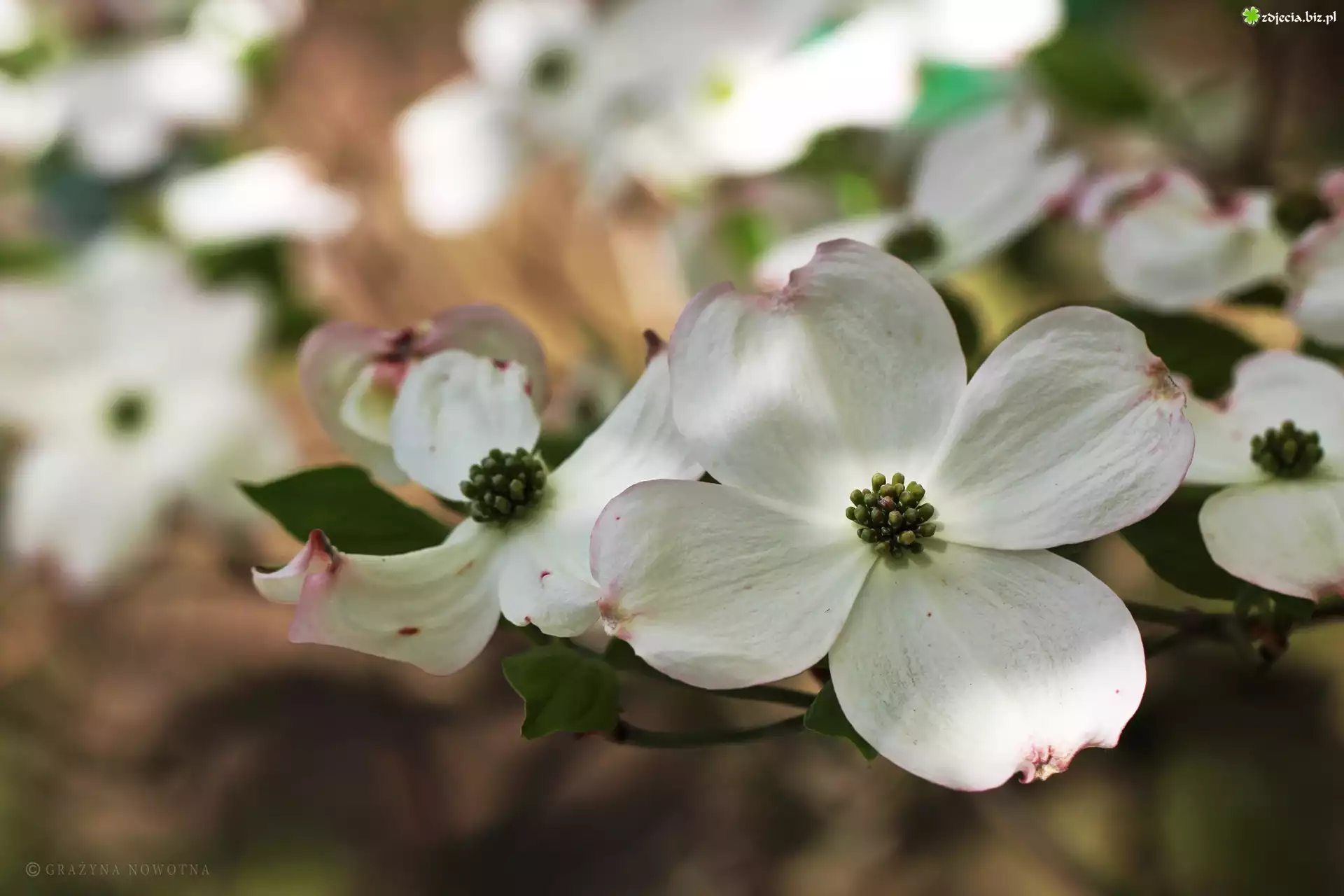 Zdjęcie, Dereń Kousa, Krzew, Białe, Kwiaty