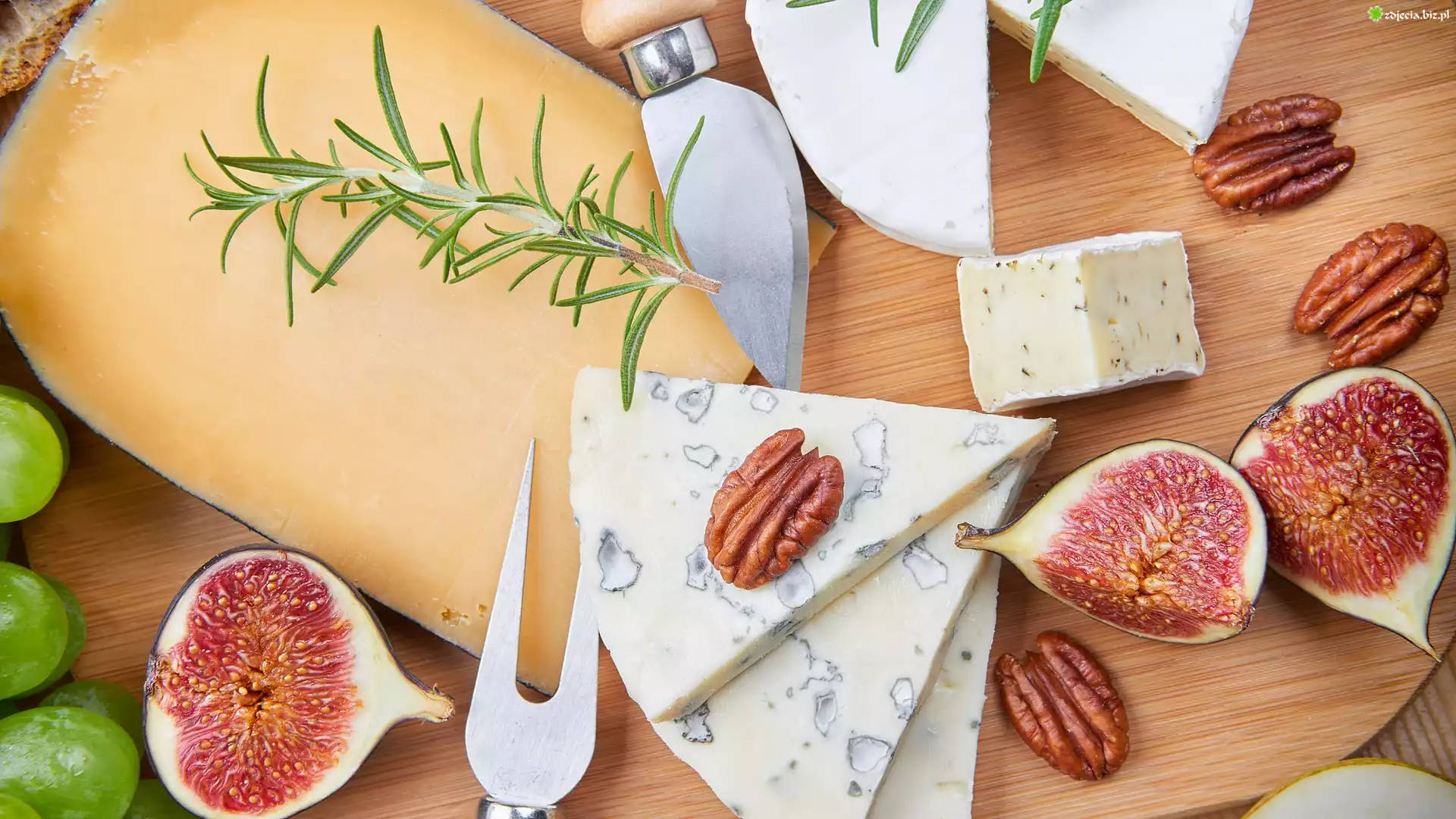 Zdjęcie Deska, Sery, Figi, Orzechy