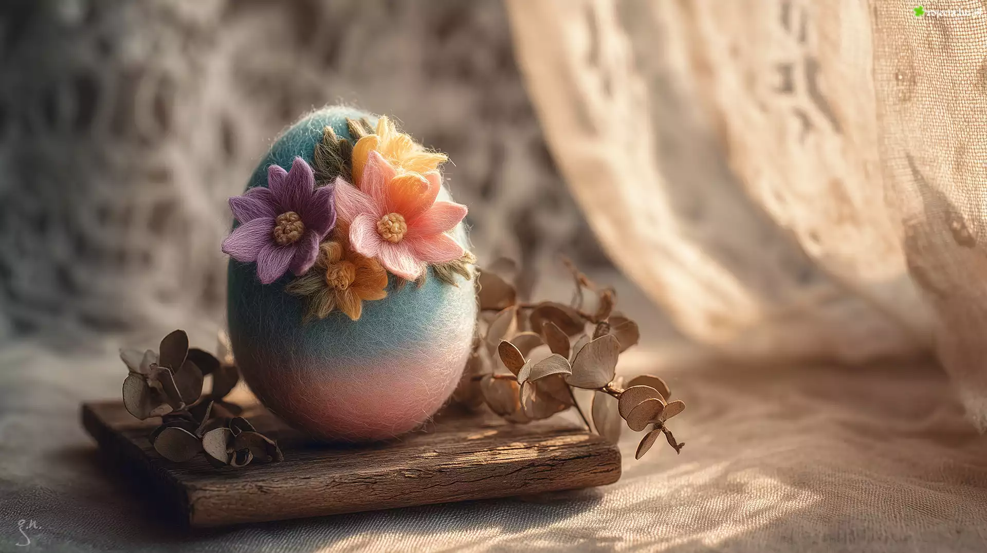 Zdjęcie Jajko, Kolorowe, Kwiaty, Deska, Grafika AI, Wielkanoc