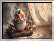 Zdjęcie, Jajko, Kolorowe, Kwiaty, Deska, Grafika AI, Wielkanoc