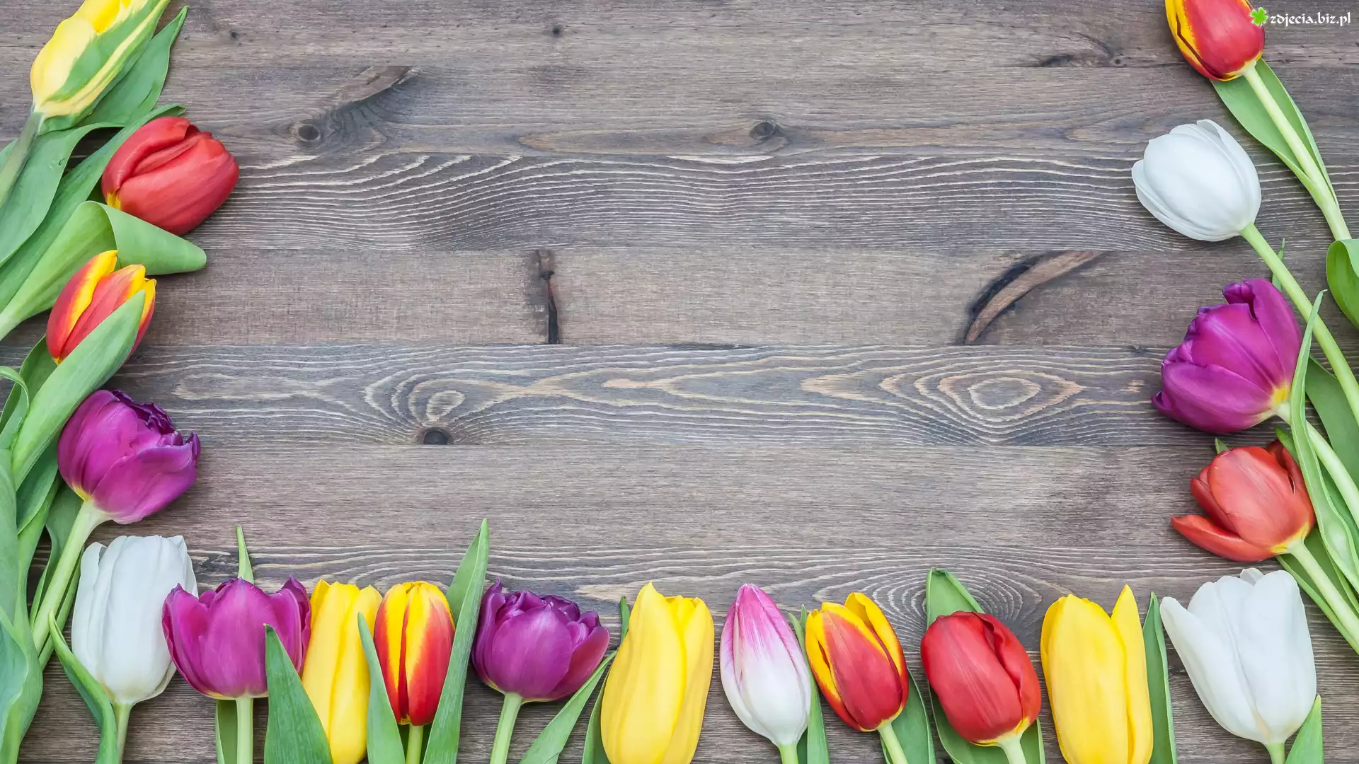 Zdjęcie, Kwiaty, Tulipany, Kolorowe, Deski