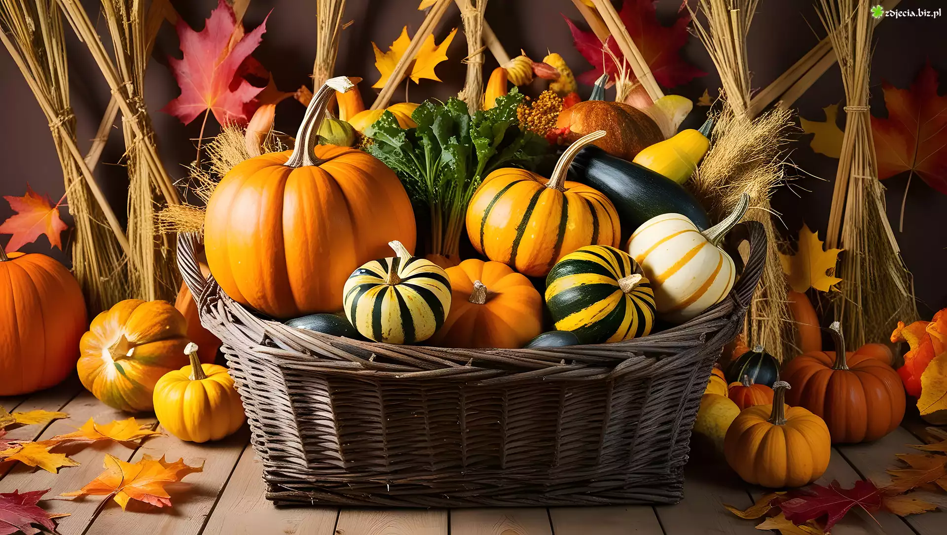 Zdjęcie Warzywa, Dynie, Kosz, Deski