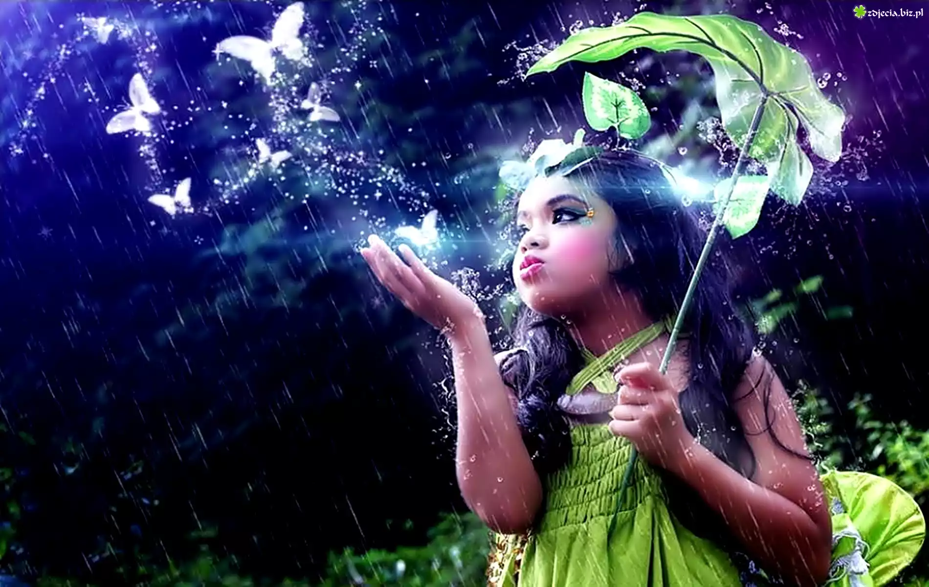 Zdjęcie Dziewczynka, Deszcz, Motyle