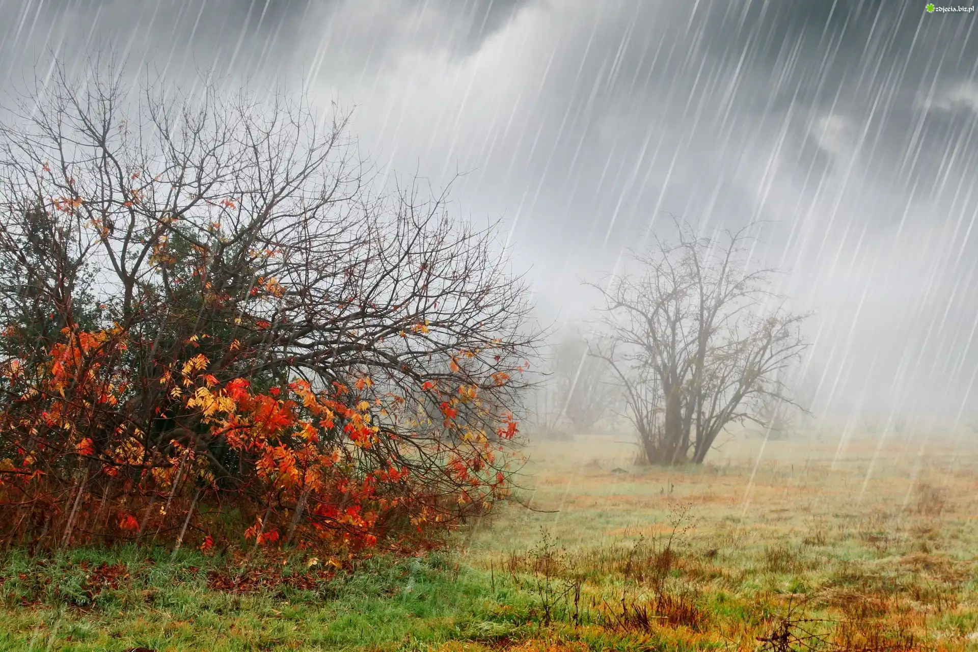 Zdjęcie Jesień, Deszcz, Krzewy