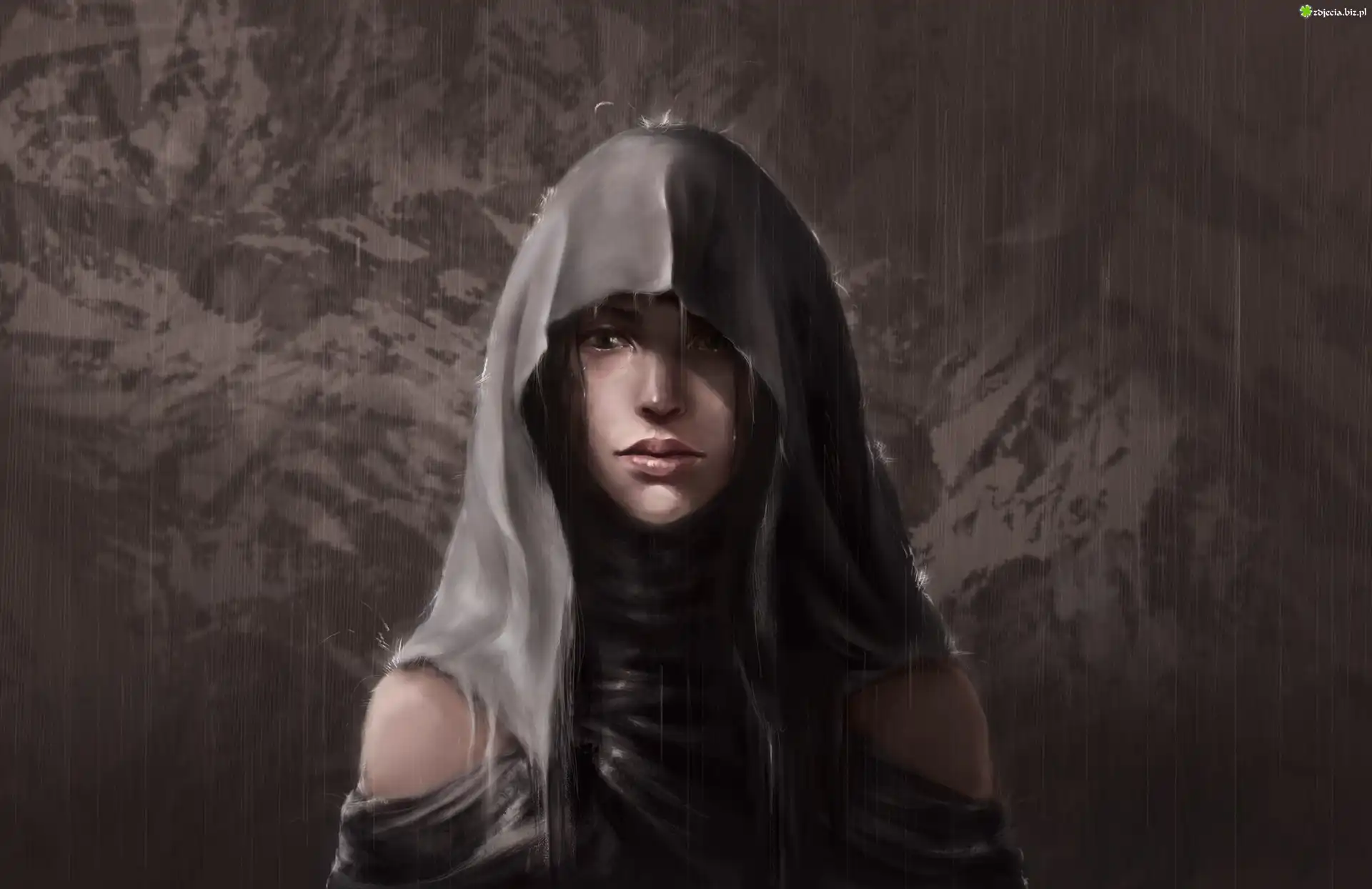 Zdjęcie, Deszcz, Smutna, Kobieta, Kaptur