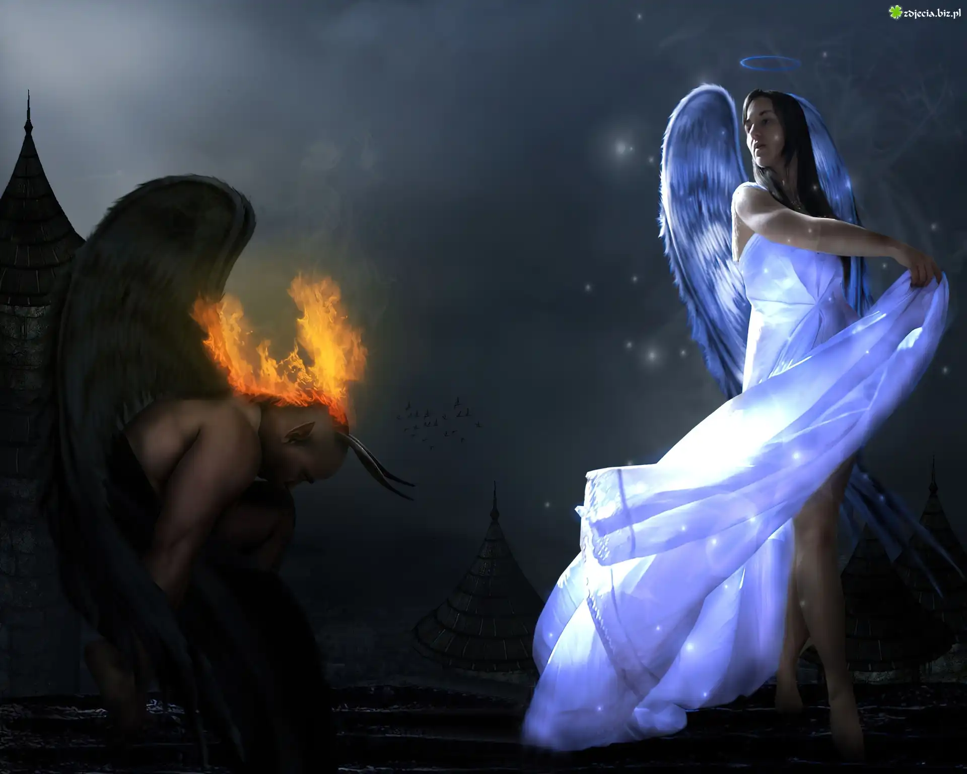 Zdjęcie, Anioł, Diabeł, Płomienie