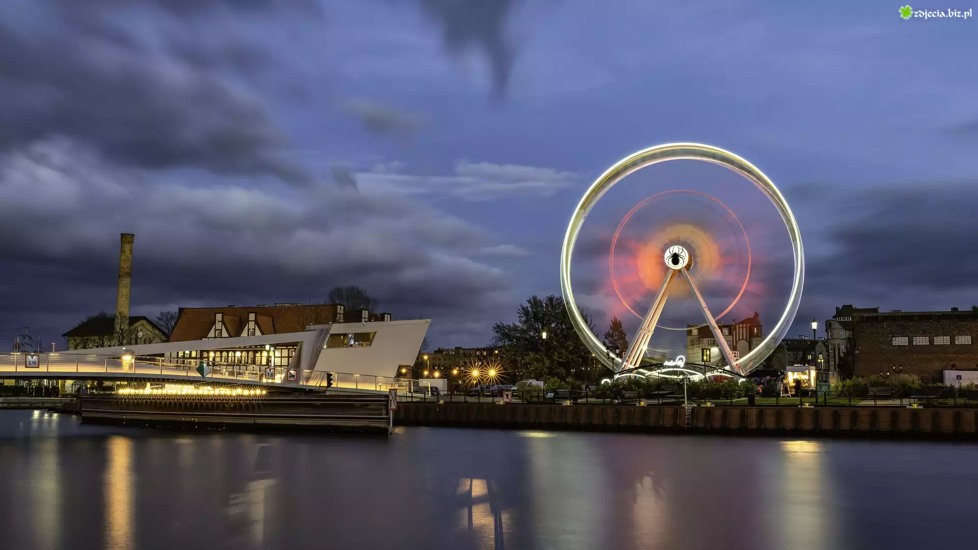 Zdjęcie Rzeka Motława, Domy, Diabelski młyn, Gdańsk, Polska