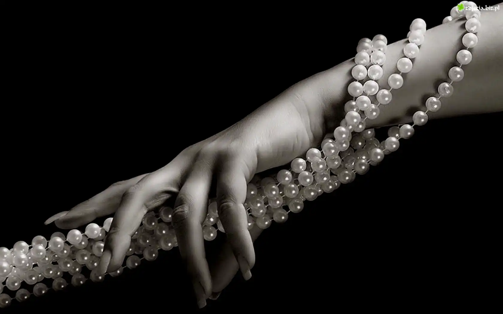 Zdjęcie Kobieca, Dłoń, Korale, Czarno-Białe