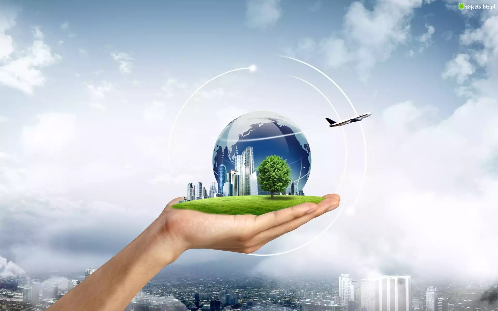 Zdjęcie Dłoń, Kula, Miasto, Samolot