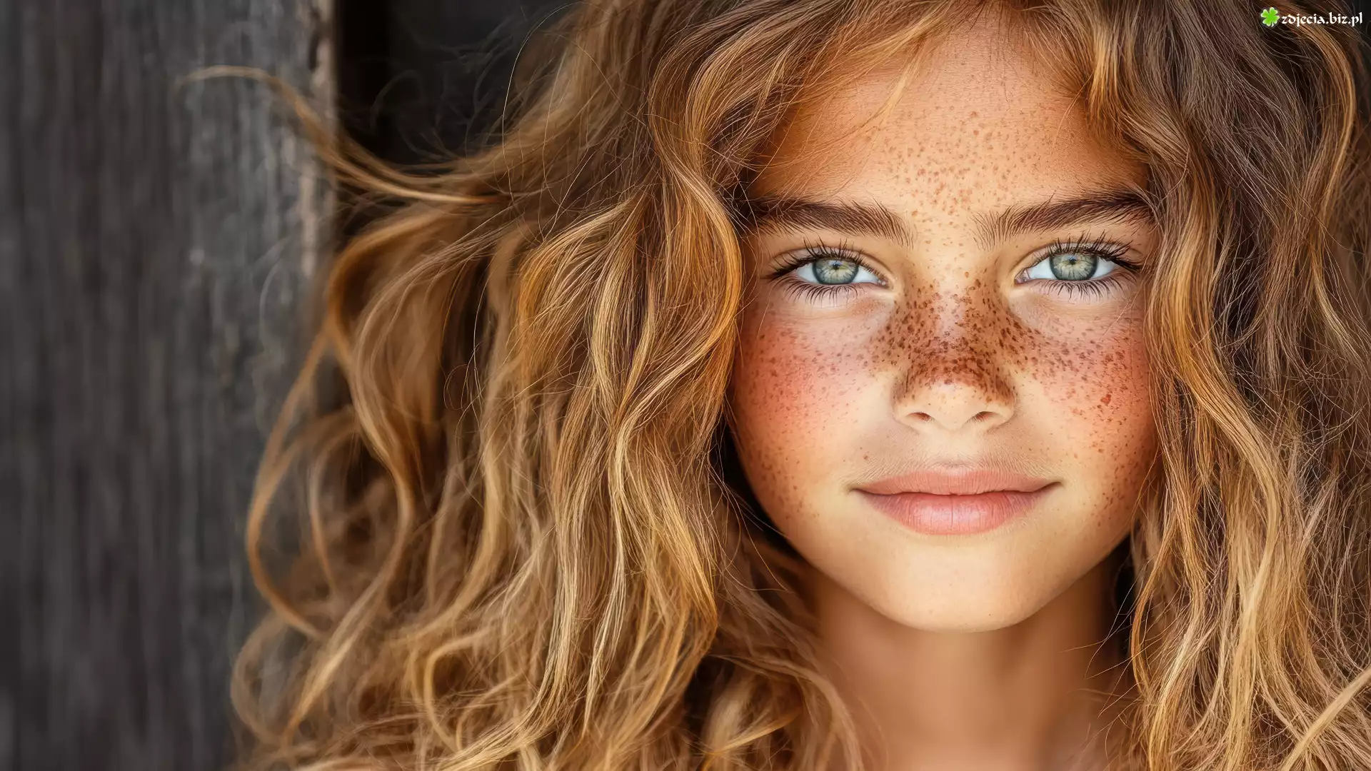 Zdjęcie Dziewczyna, Długowłosa, Blondynka, Uśmiech, Piegi