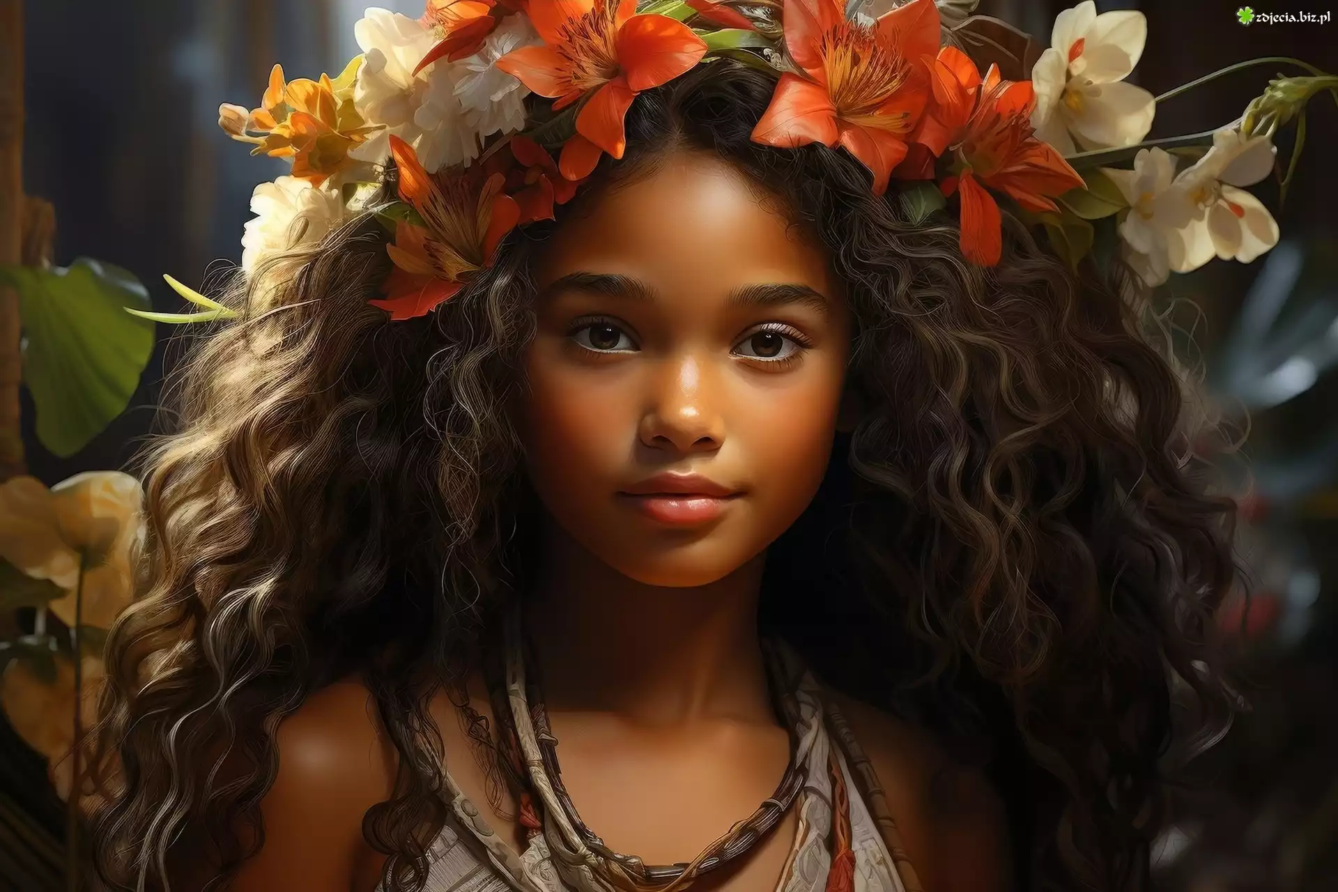 Zdjęcie Dziewczynka, Długowłosa, Kwiaty, Wianek, Grafika