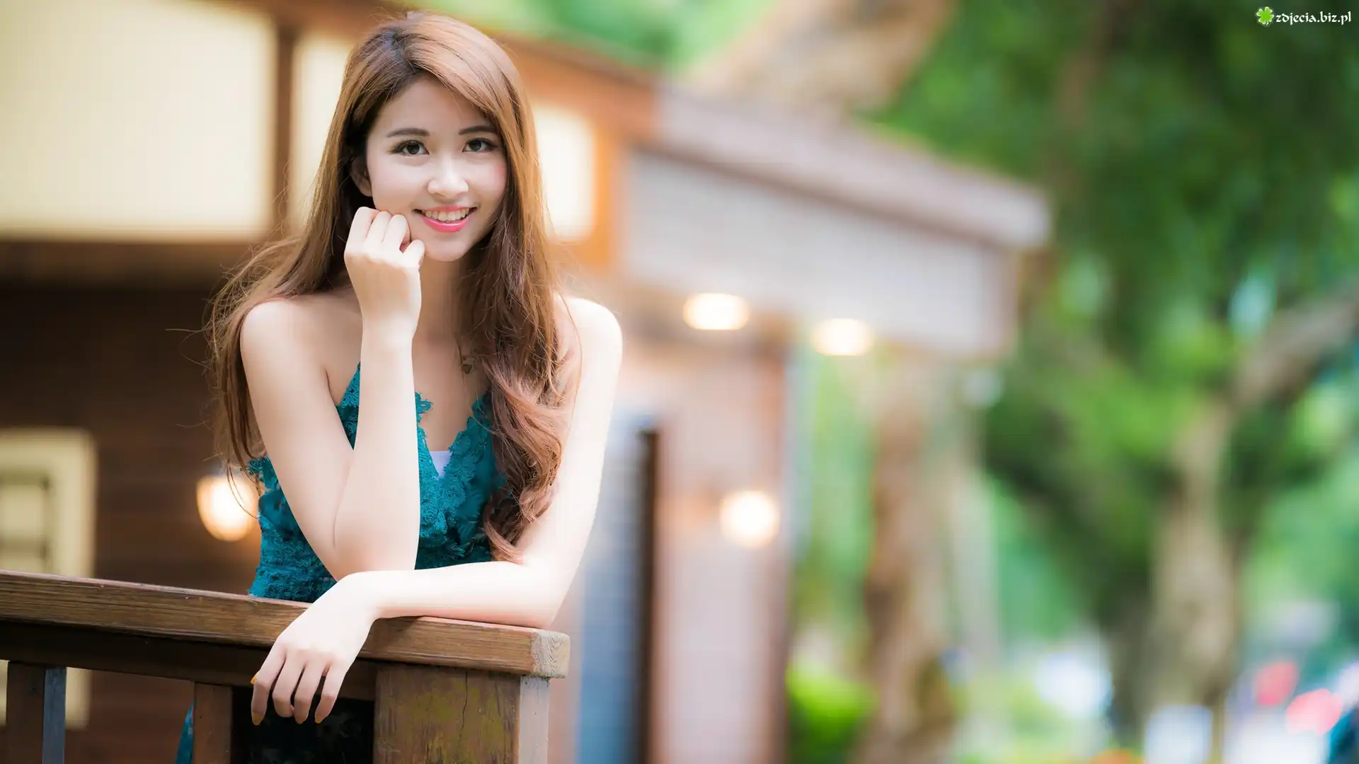 Zdjęcie Długowłosa, Szatynka, Uśmiechnięta, Azjatka