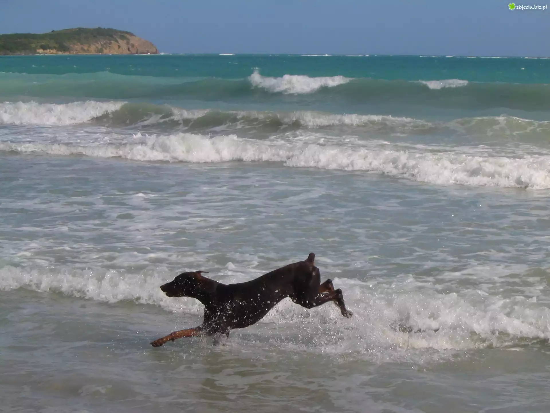 Zdjęcie Biegnący, Doberman, Plaża