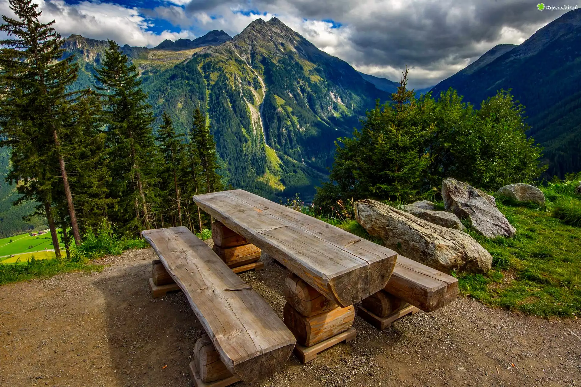 Zdjęcie Ławka, Góry, Dolina, Krajobraz