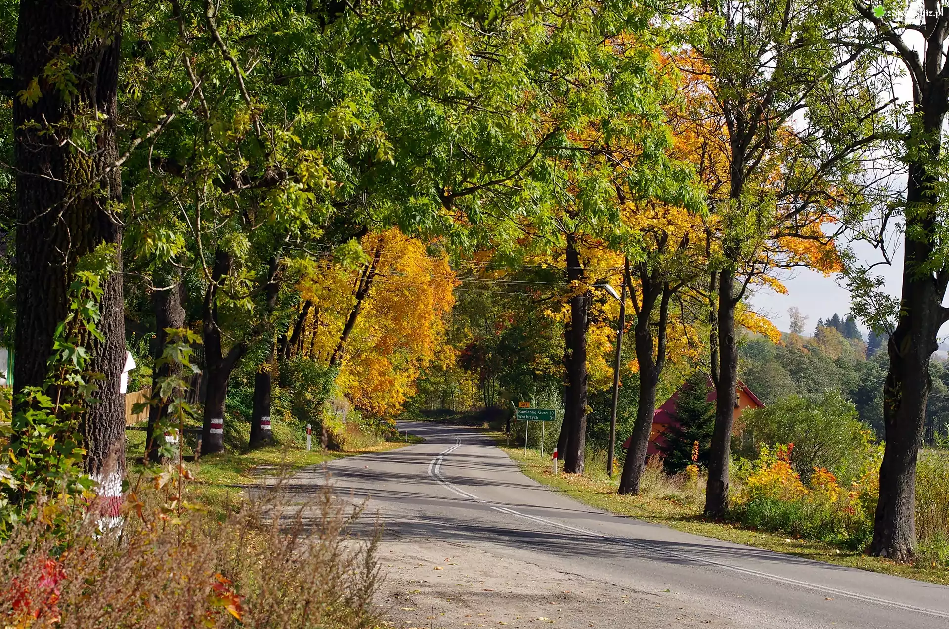 Zdjęcie Dolny, Śląsk, Dom, Droga, Drzewa, Jesień