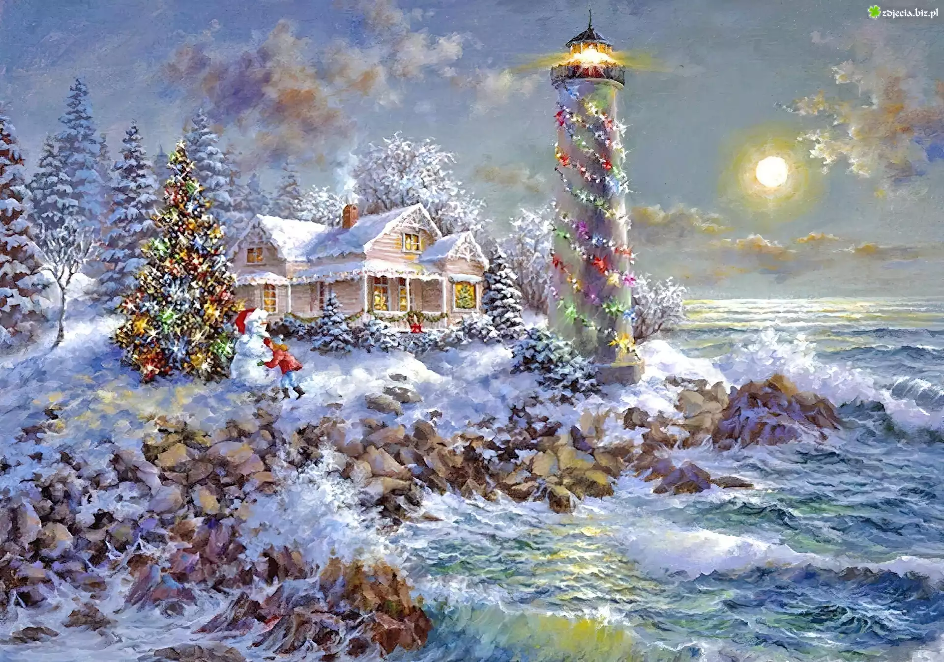 Zdjęcie Dom, Latarnia Morska, Zima, Boże Narodzenie