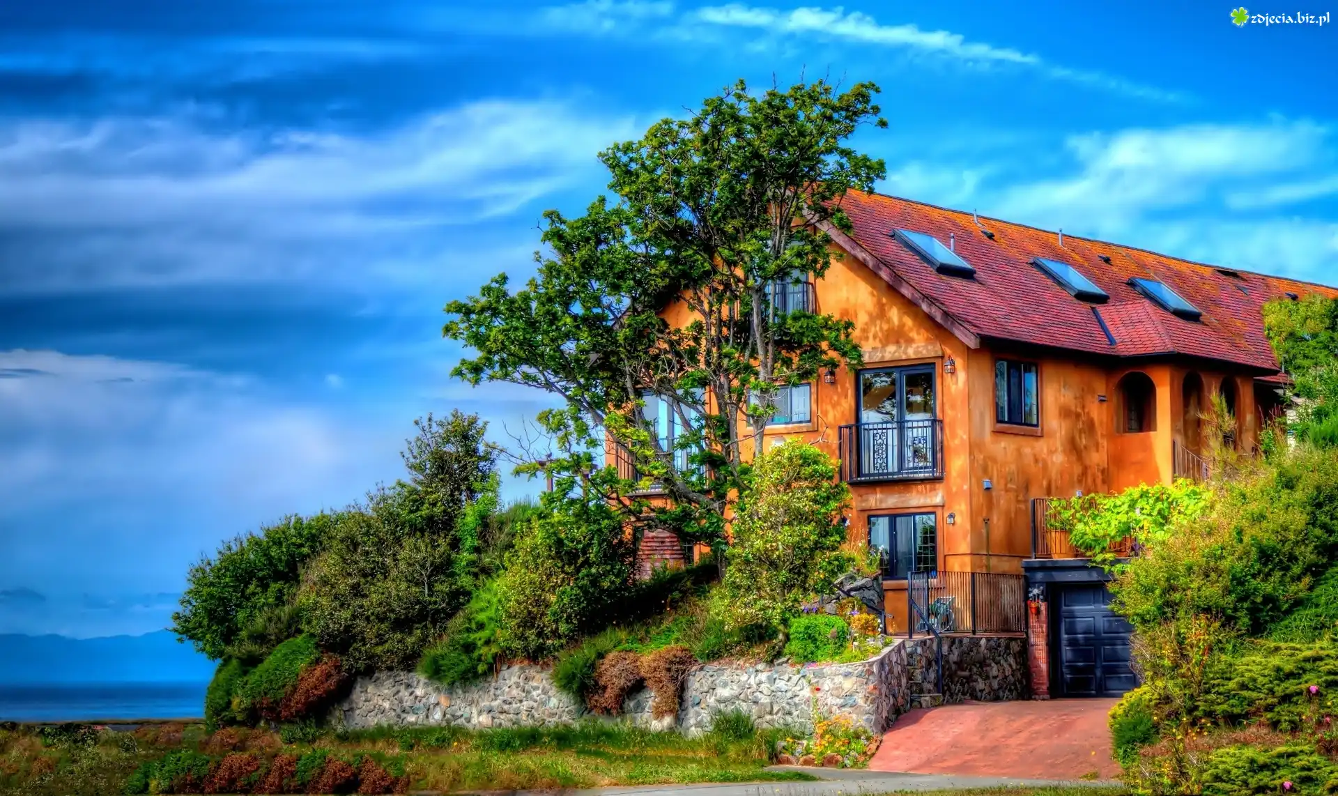Zdjęcie Dom, Ogród, Drzewa, Krzewy
