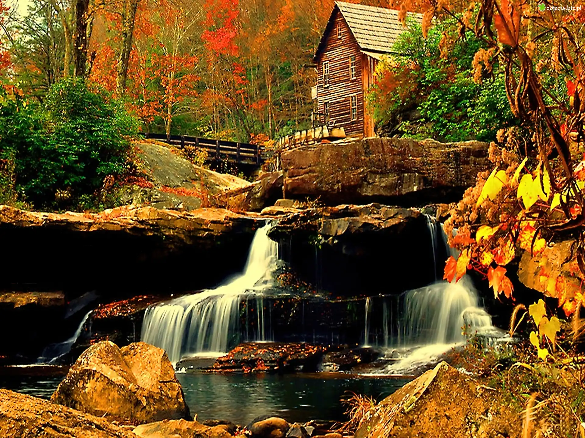 Zdjęcie, Jesień, Wodospad, Skała, Młyn
