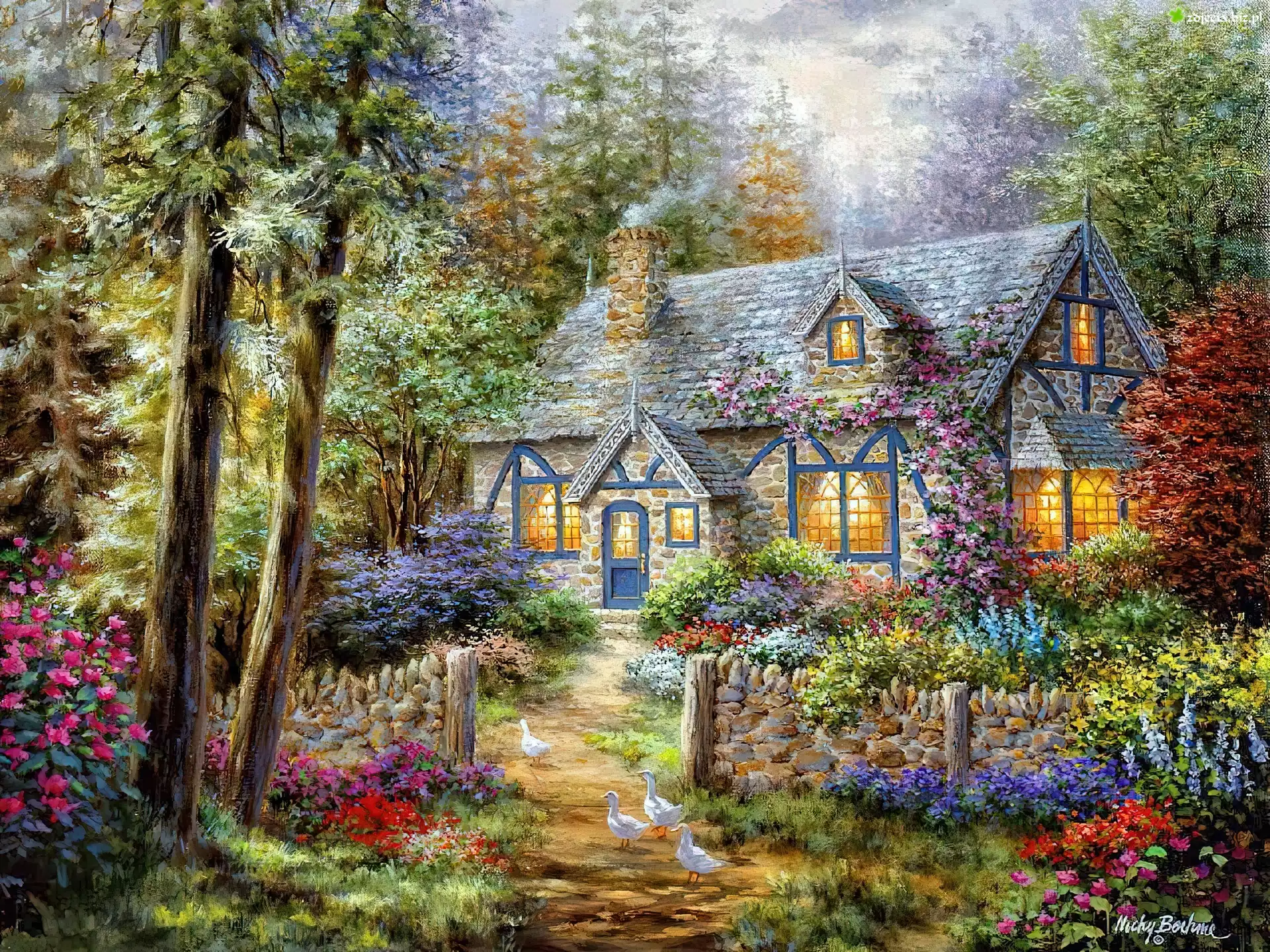 Zdjęcie, Dom, Ogród, Kwiaty, Obraz, Nicky Boehme