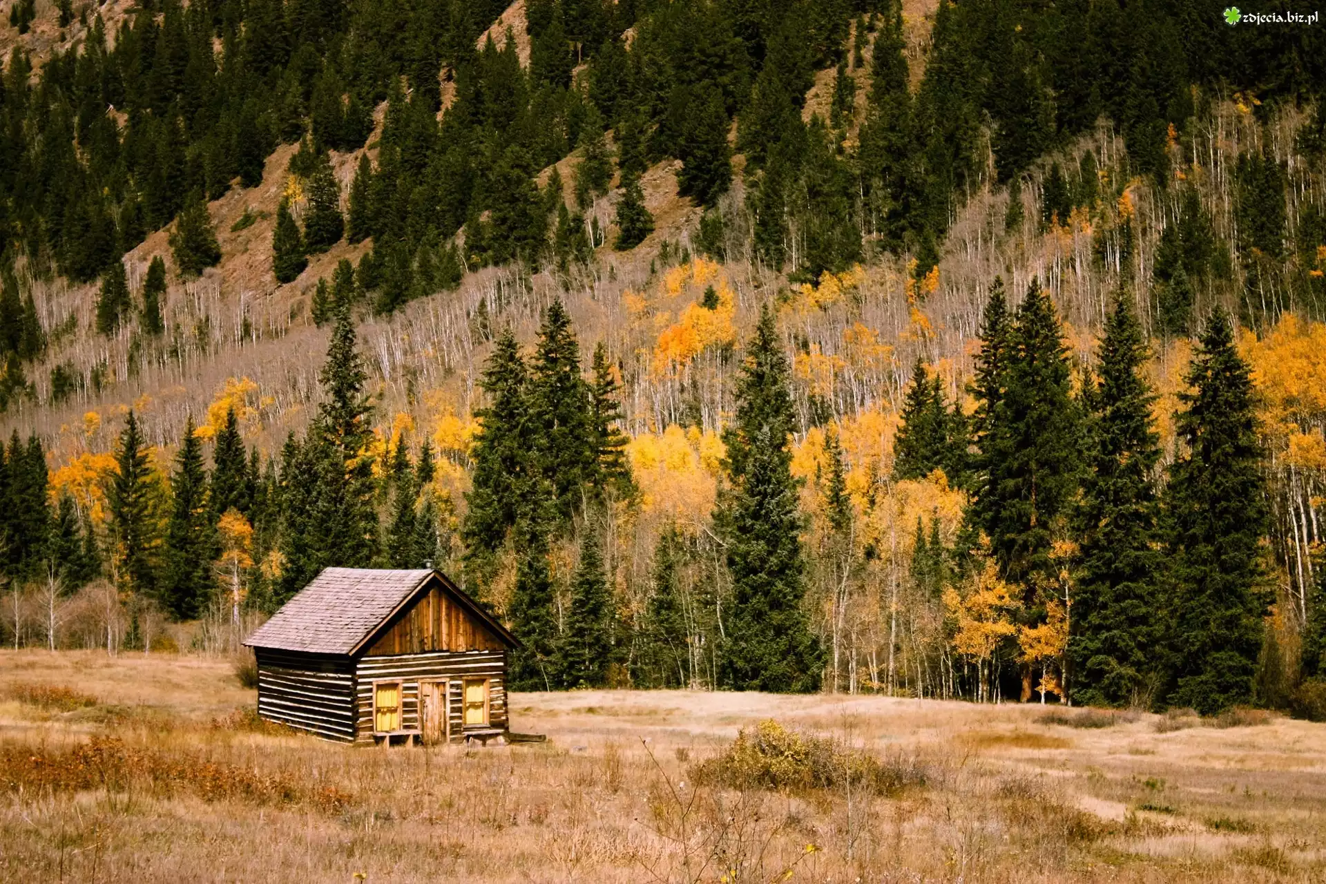 Zdjęcie Dom, Drewniany, Góry, Las, Trawy