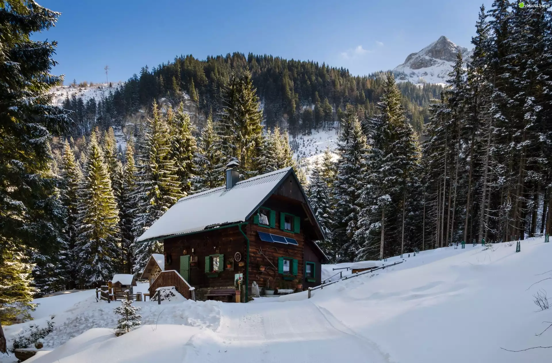 Zdjęcie Dom, Góry, Lasy, Zima