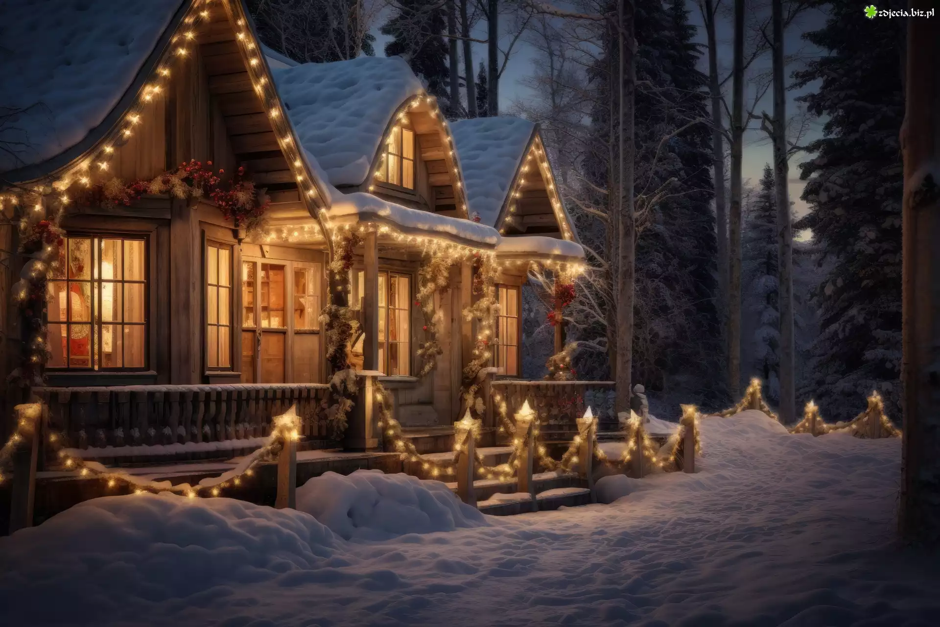 Zdjęcie Zima, Boże Narodzenie, Dom, Dekoracje, Las, Drzewa