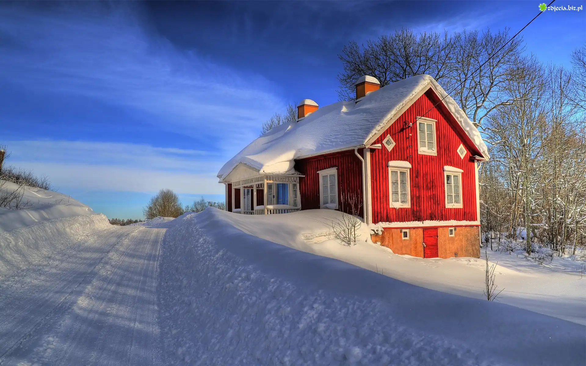 Zdjęcie Dom, Niebo, Śnieg, Droga