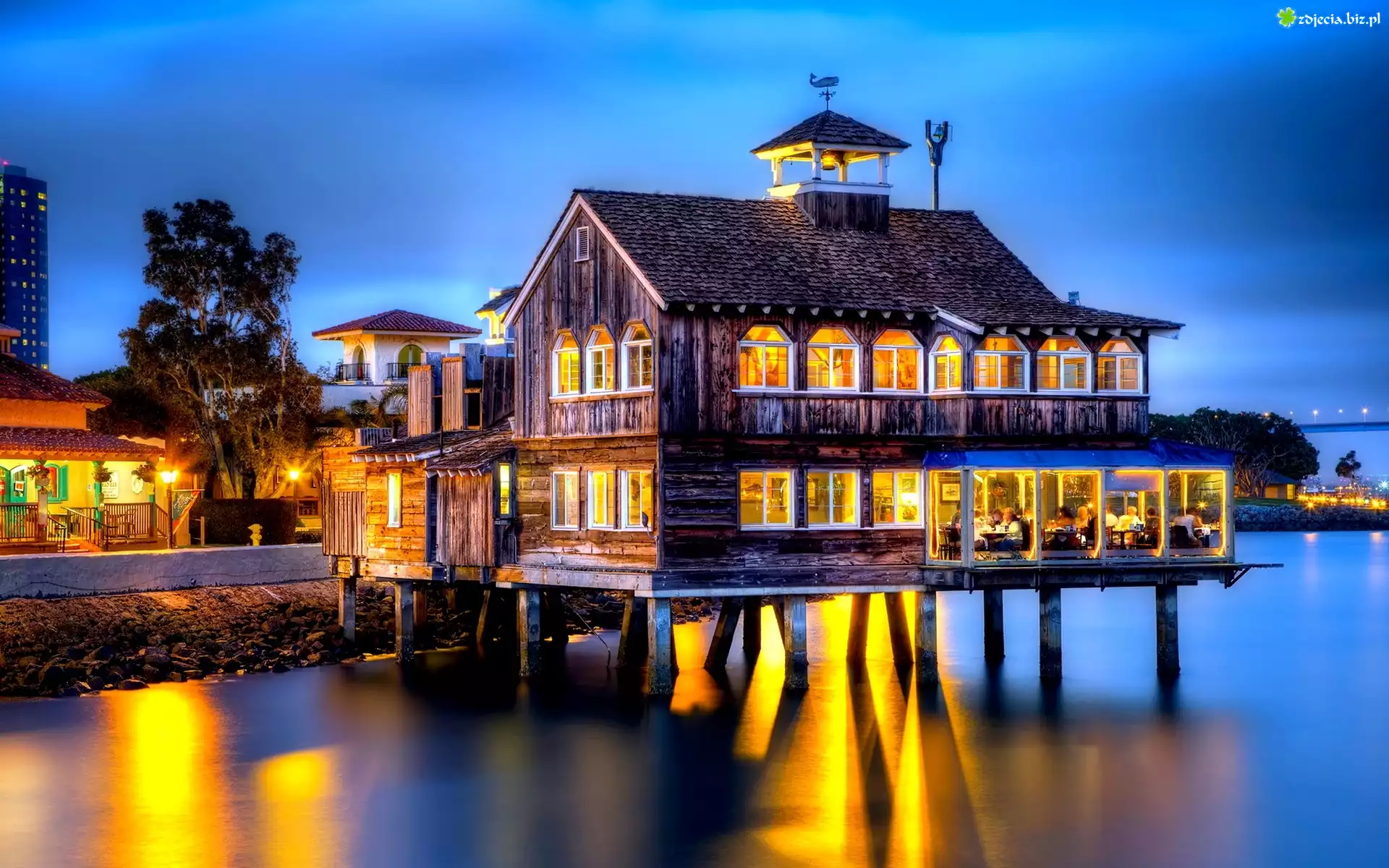 Zdjęcie Dom, Jezioro, Noc, Światła