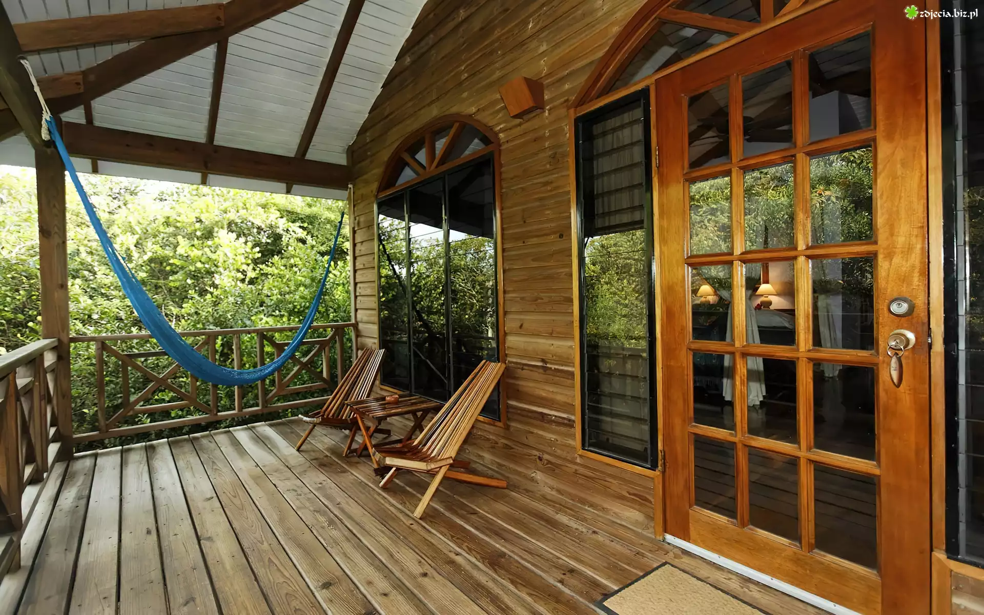 Zdjęcie Dom, Drewniany, Taras, Okna, Hamak