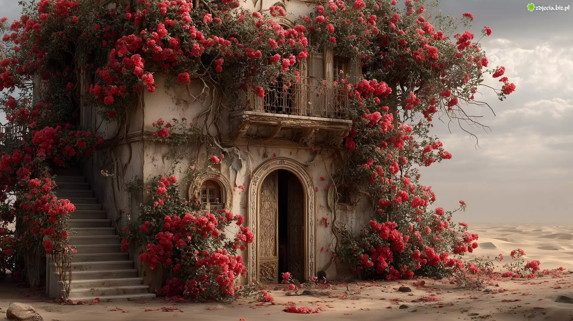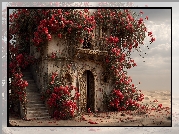 Zdjęcie Stary, Dom, Pnące, Róże, Piasek