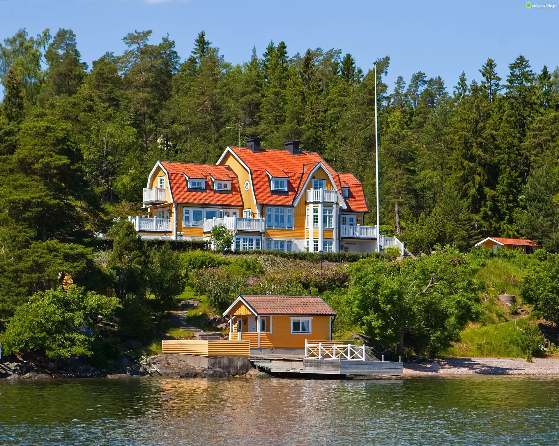 Zdjęcie Dom, Las, Rzeka, Szwecja