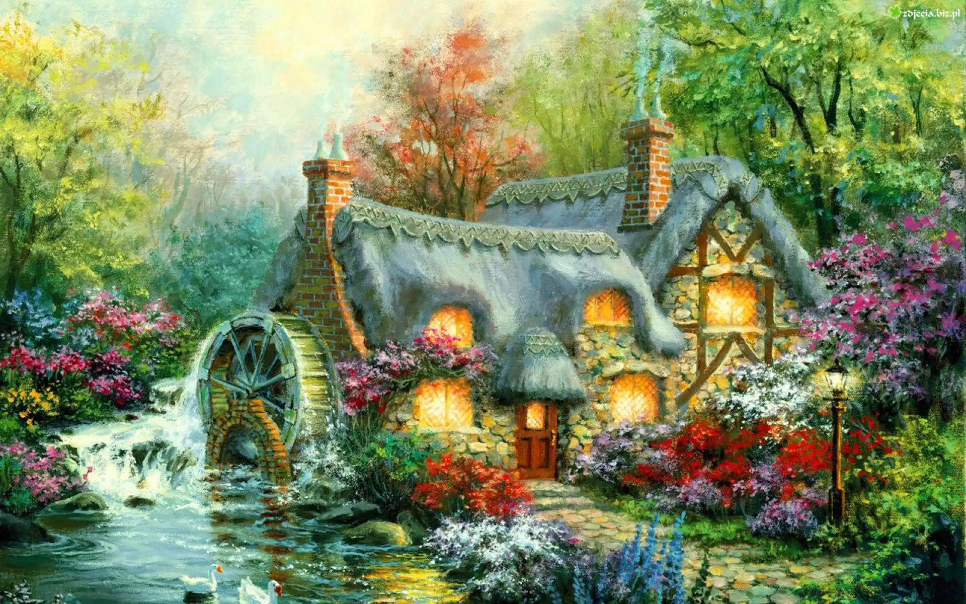 Zdjęcie Dom, Młyn, Rzeka, Ogród