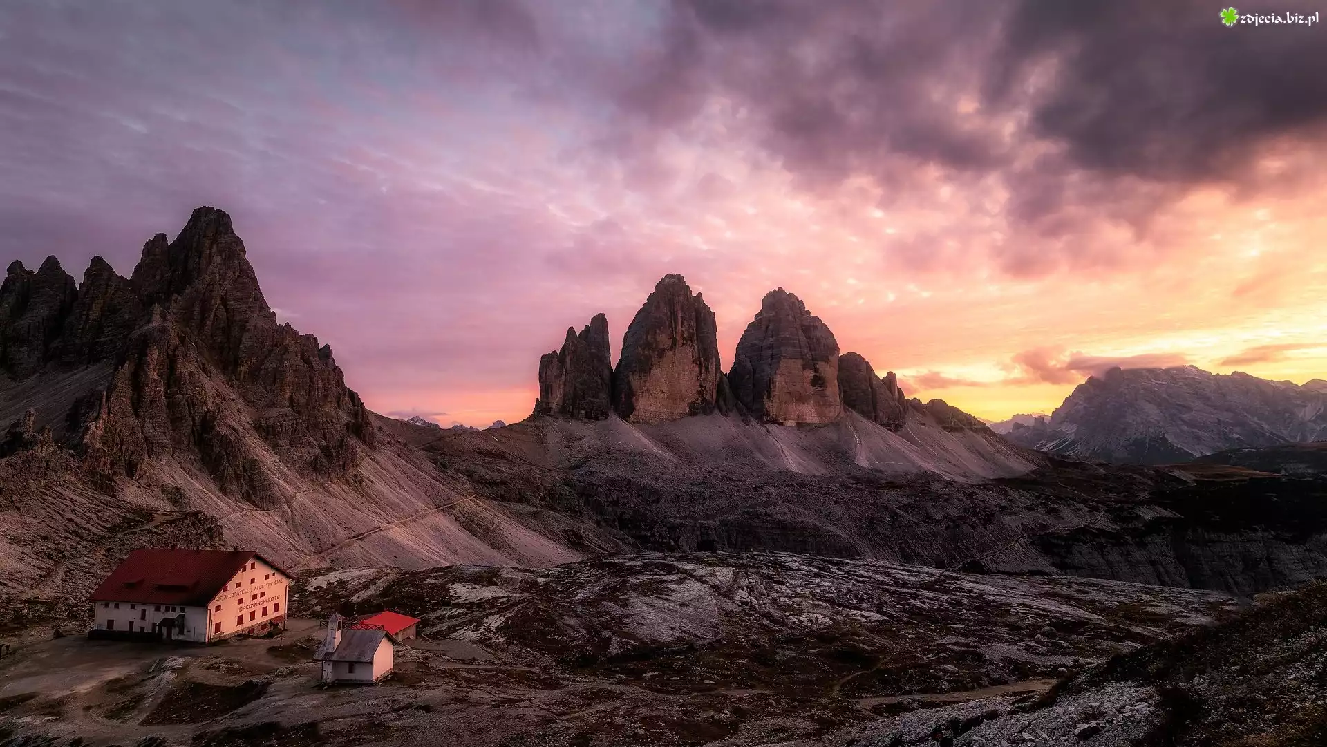 Zdjęcie, Góry, Tre Cime di Lavaredo, Dolomity, Dom, Schronisko, Auronzo, Kaplica, Włochy