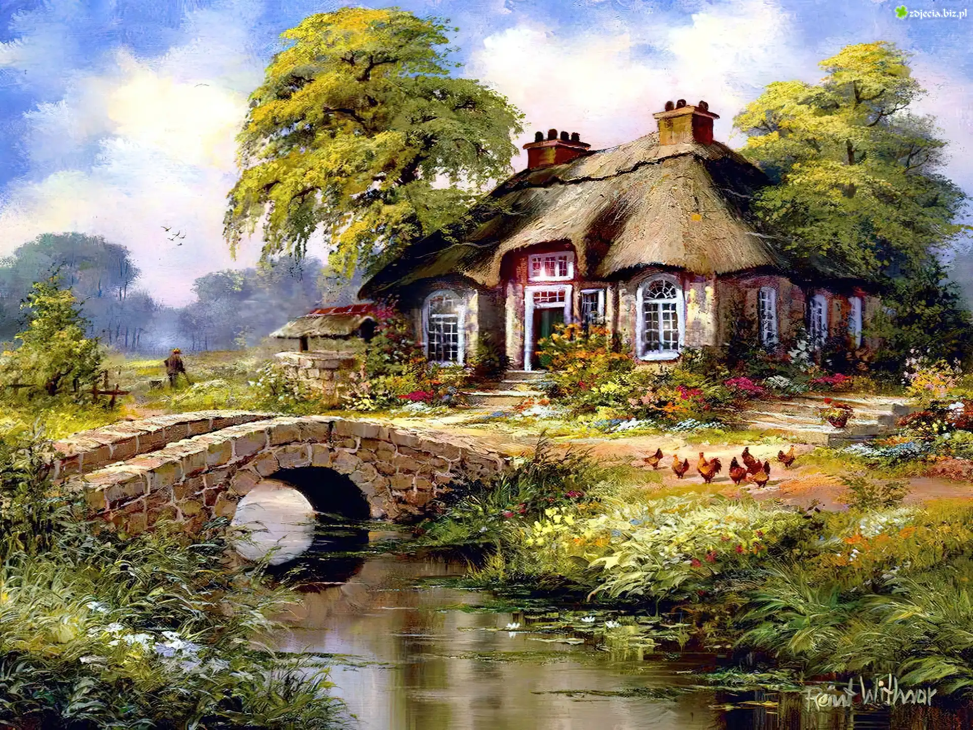 Zdjęcie Dom, Most, Rzeka, Wiejski, Widoczek