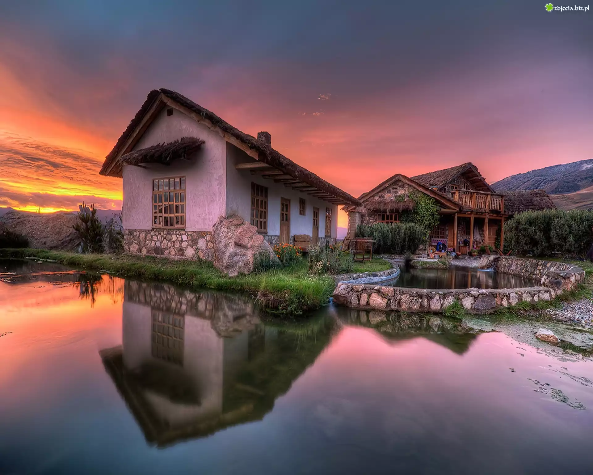 Zdjęcie Dom, Jezioro, Zachód, Słońca