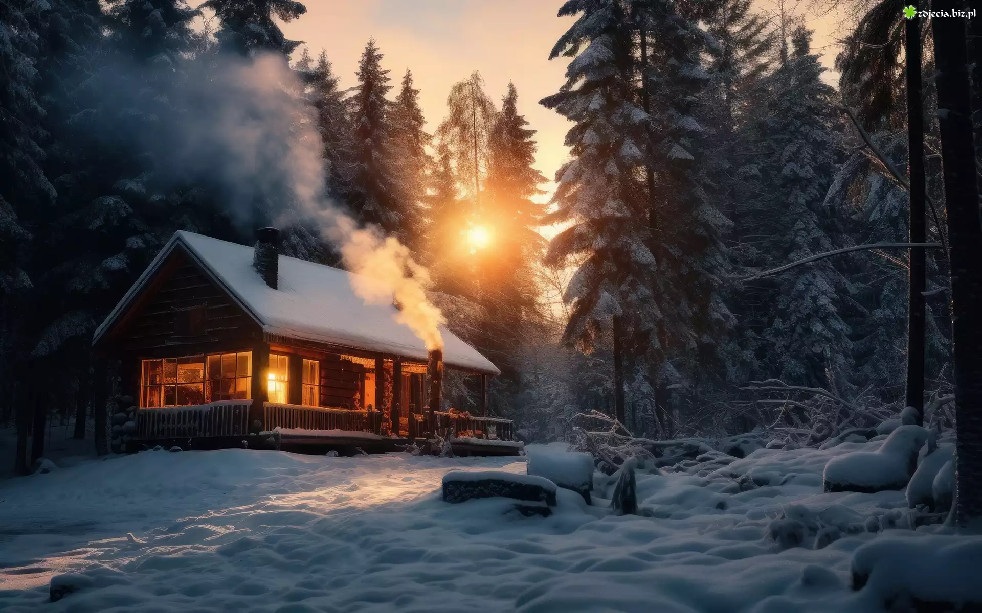 Zdjęcie Zima, Las, Drzewa, Dom