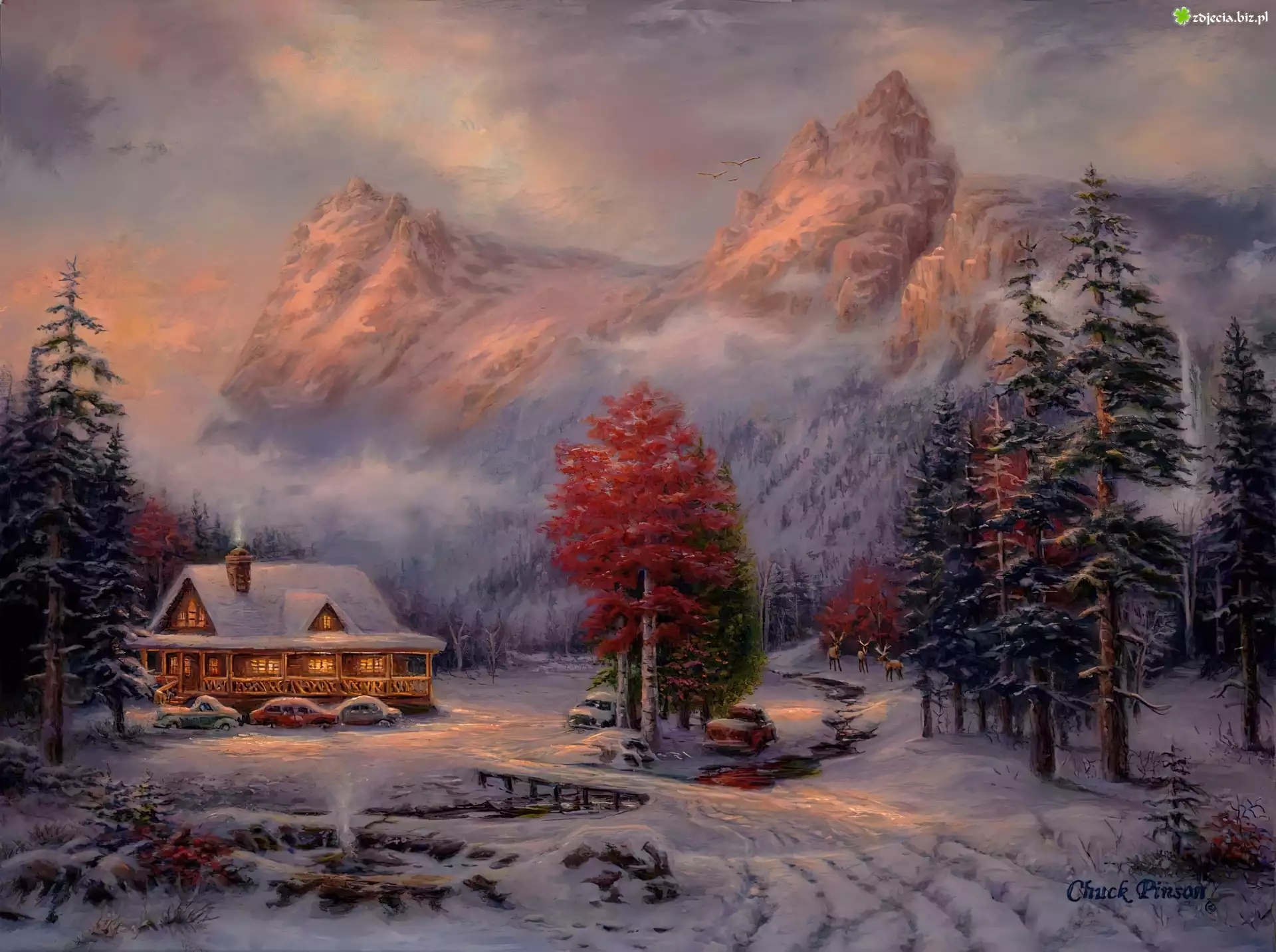 Zdjęcie Dom, Góry, Zima, Widoczek, Chuck Pinson