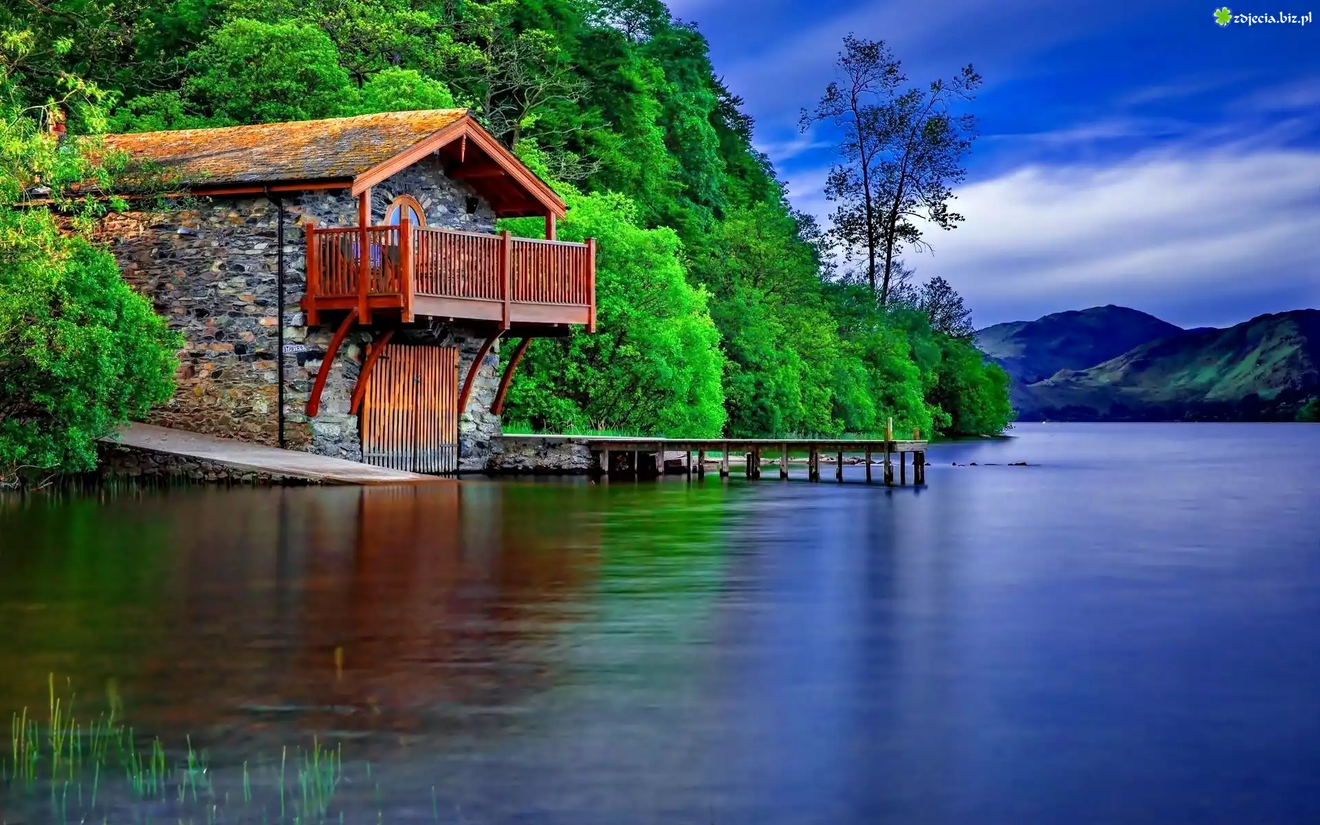 Zdjęcie Jezioro, Domek, Drzewa