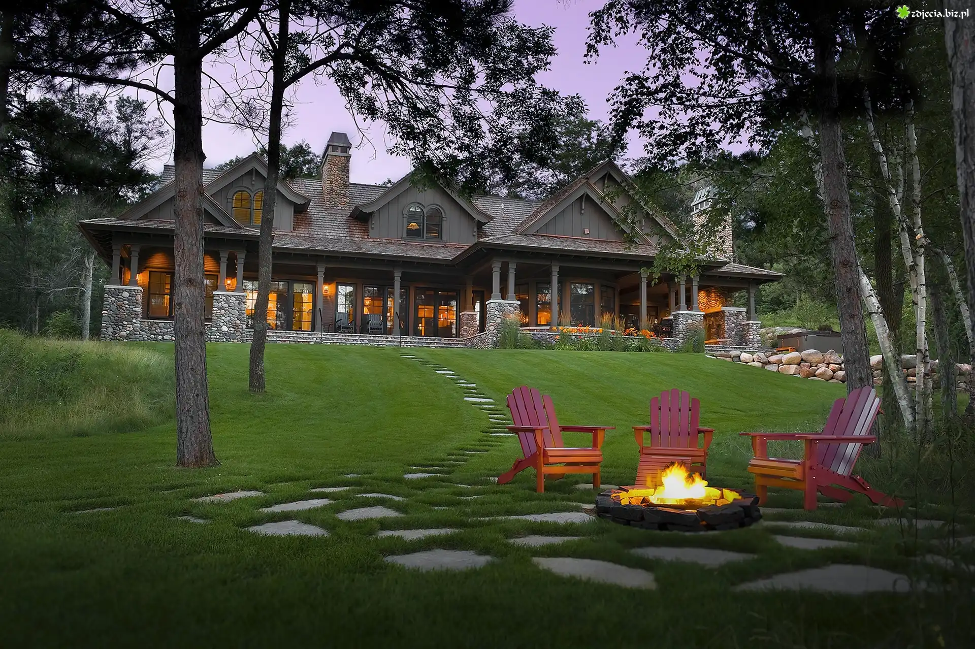 Zdjęcie, Domek, Ogródek, Ognisko, Ogień