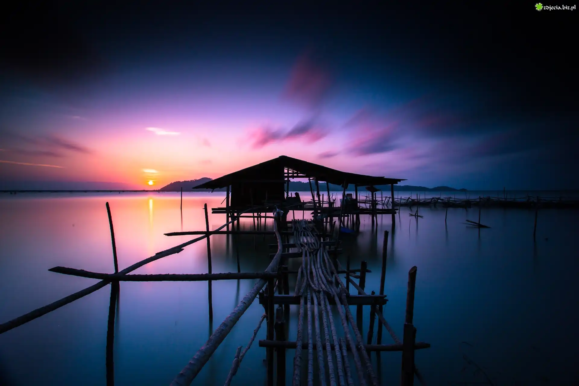 Zdjęcie Domek, Morze, Zachód Słońca, Lato