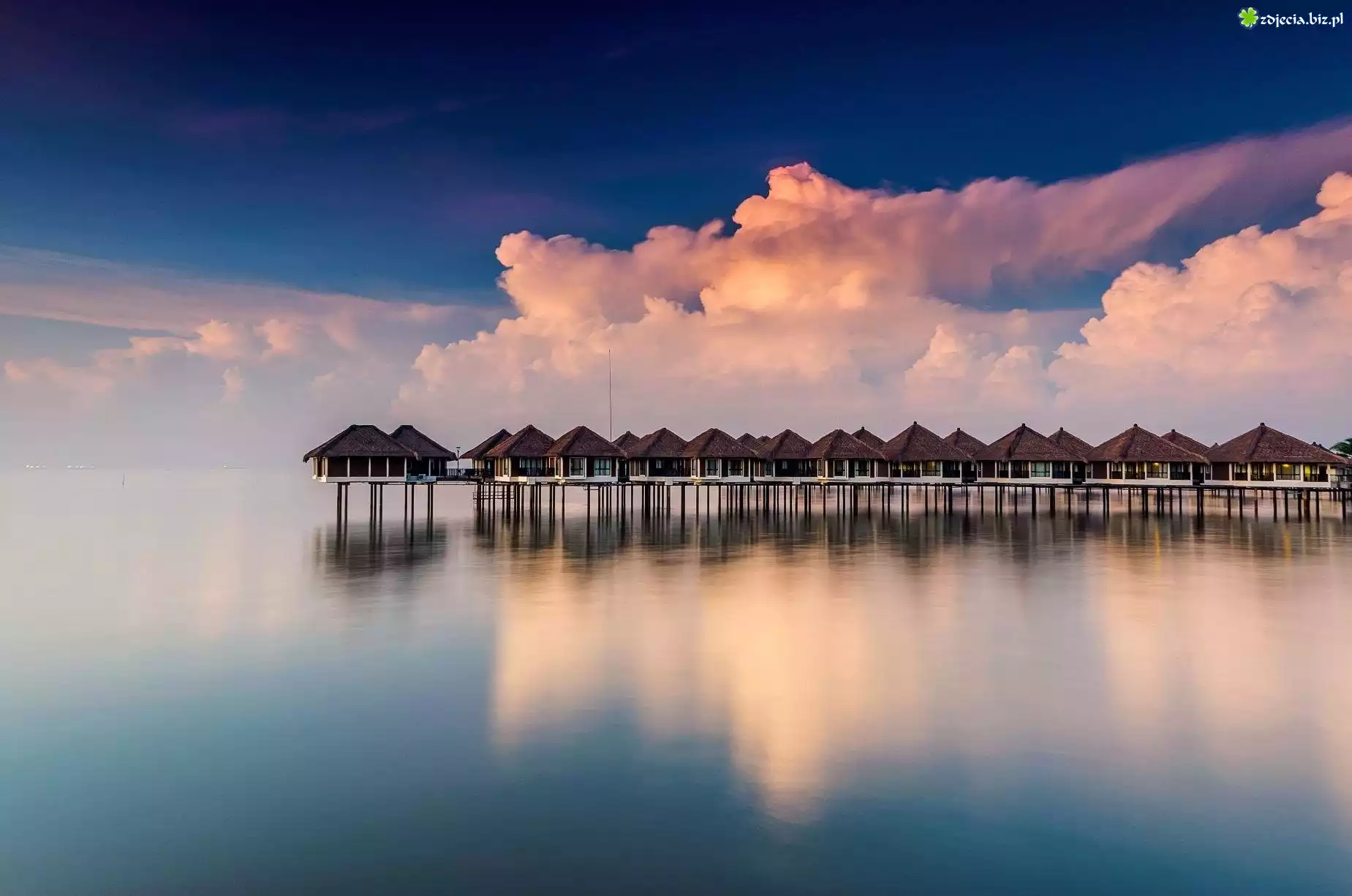 Zdjęcie Morze, Domki, Chmury