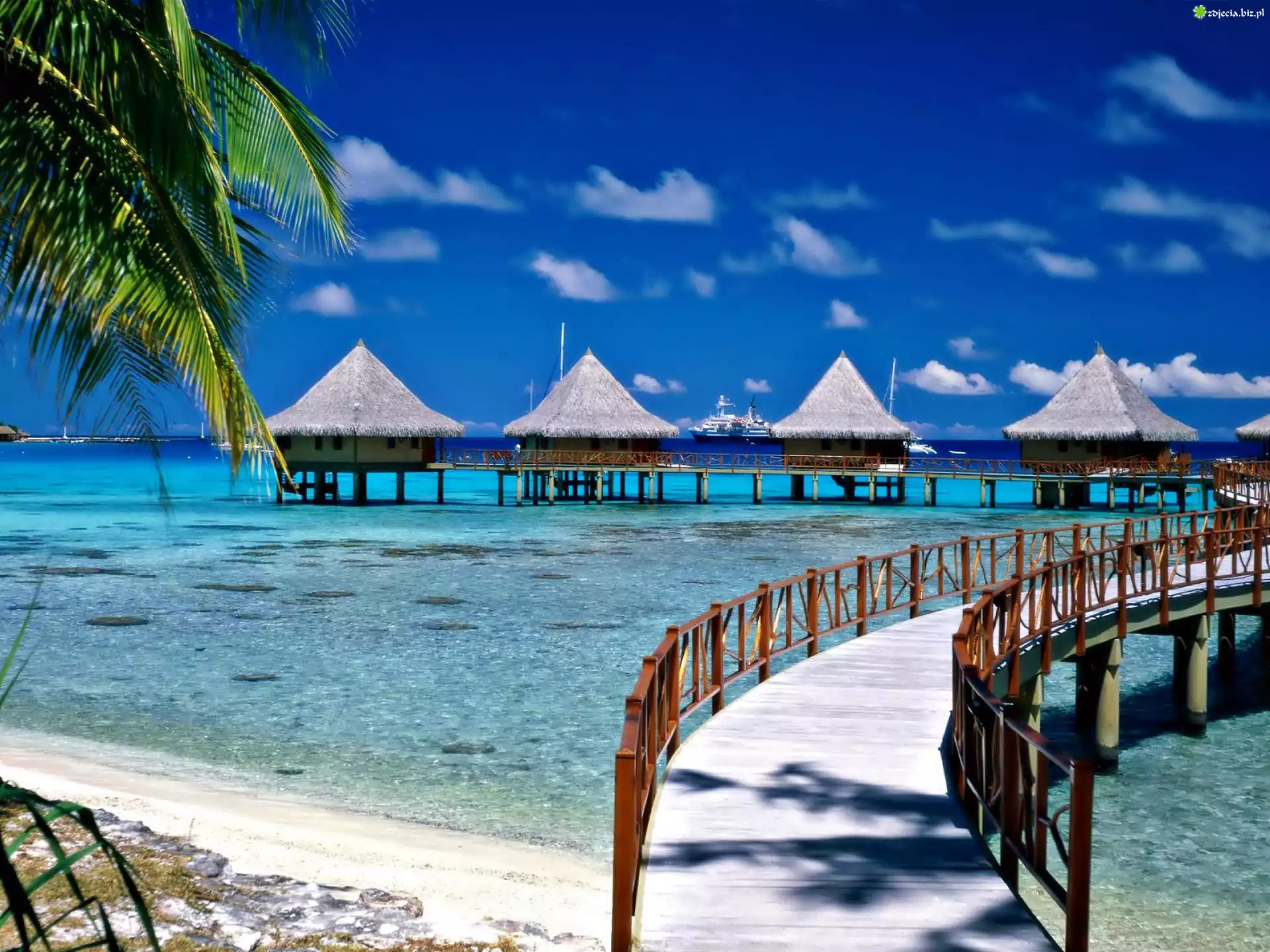 Zdjęcie Domki, Na, Wodzie, Plaża, Morze, Mostek