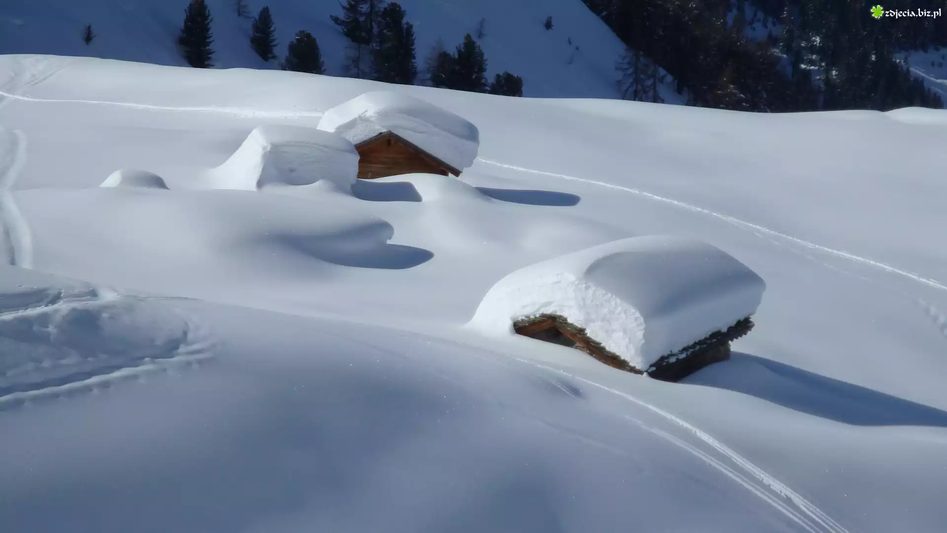 Zdjęcie Domki, Zasypane, Śniegiem, Zima