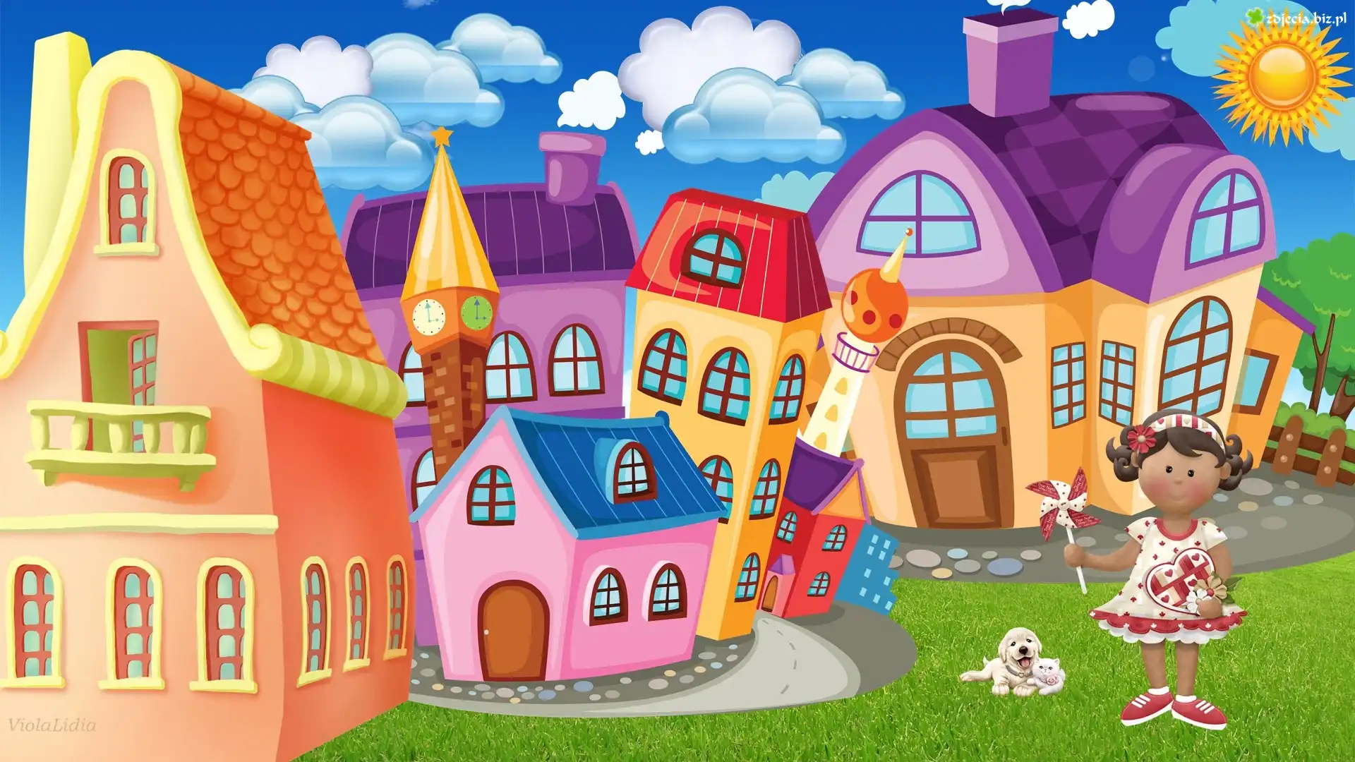 Zdjęcie, Grafika, Domy, Dziewczynka