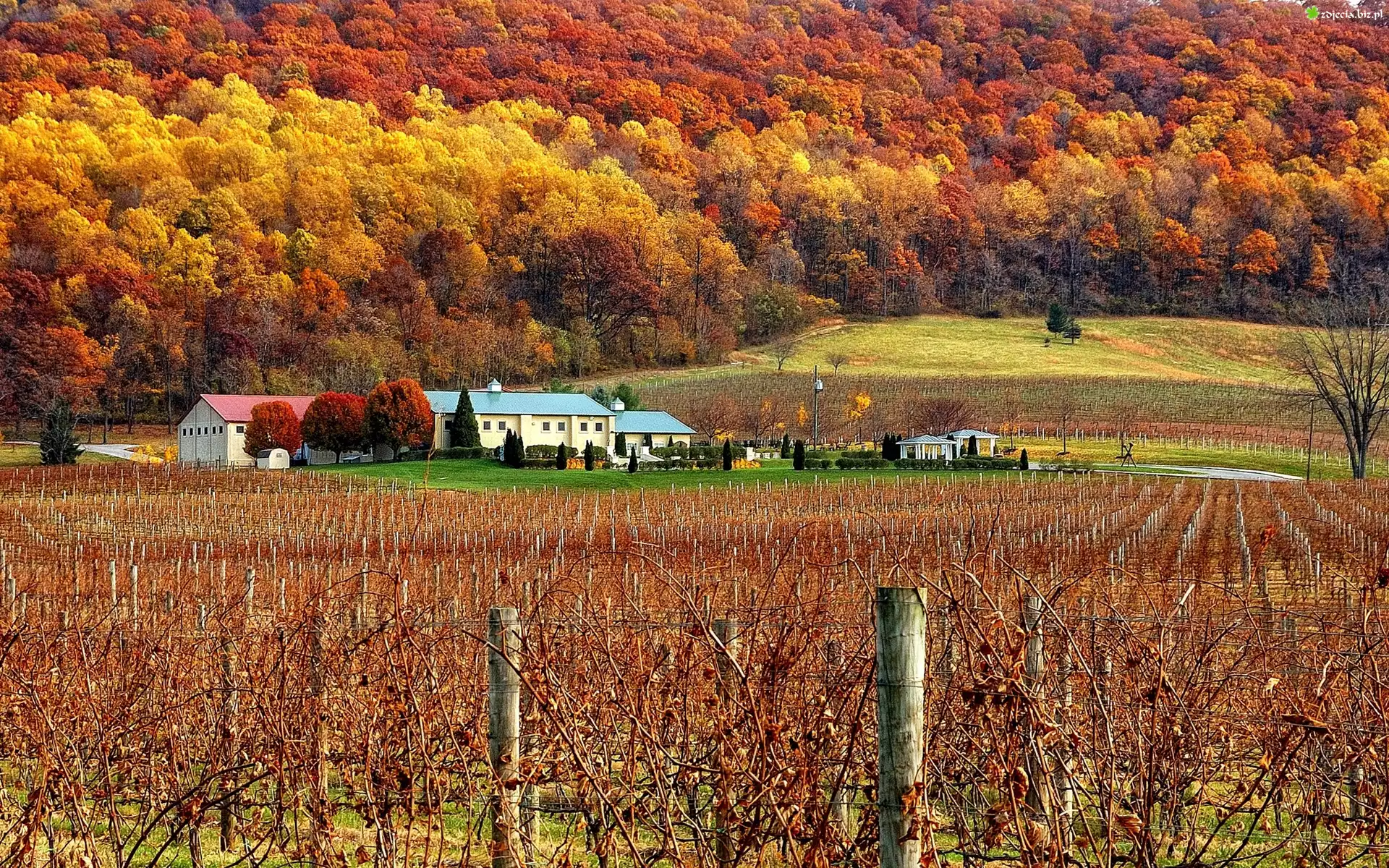 Zdjęcie Domy, Winnice, Lasy, Jesień, Włochy