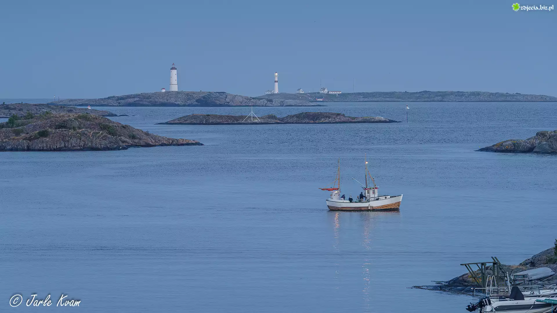 Zdjęcie Morze, Latarnie morskie, Domy, Wysepki, Kuter